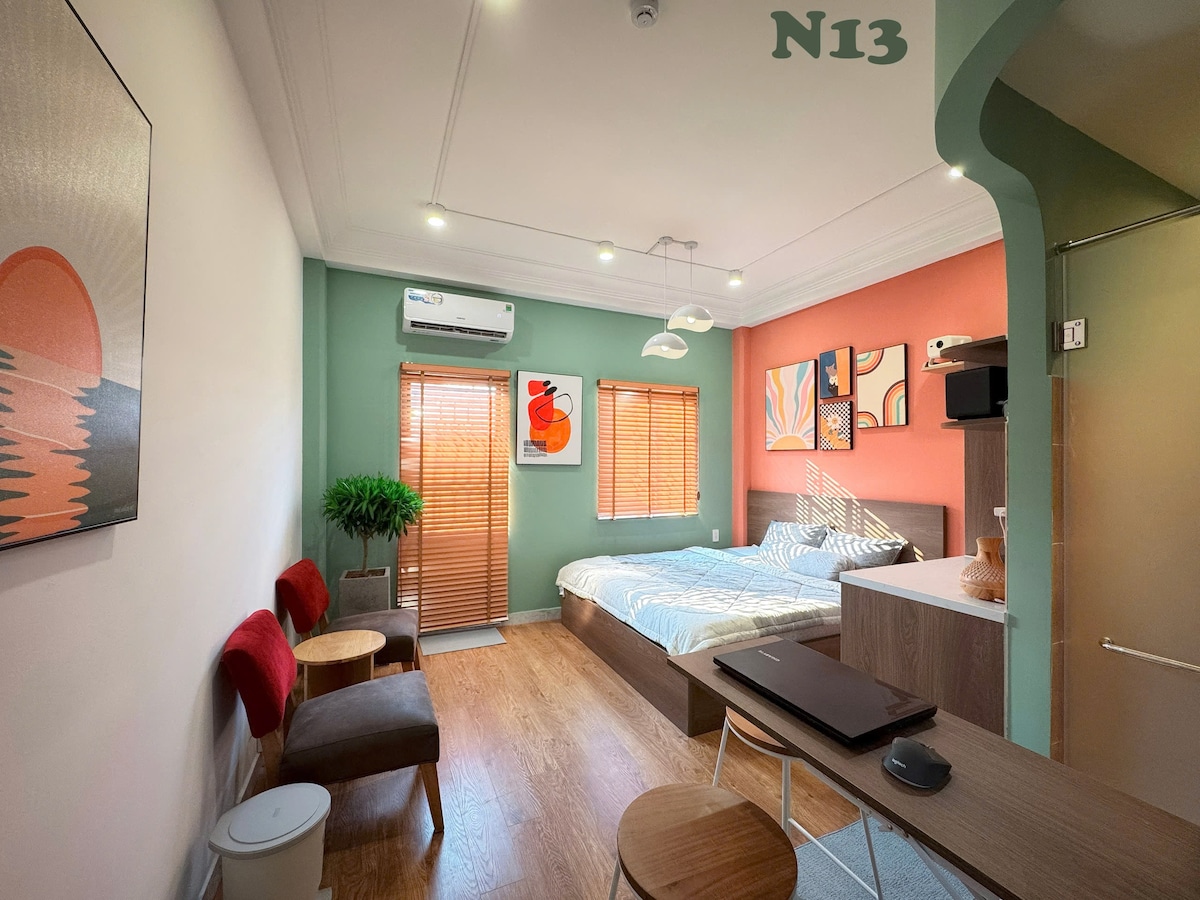 Our studio is just a few steps away from popular tourist attractions: Ben Thanh Market, vibrant Bui Vien area, Nguyen Hue walking street, and many other must-see spots. Enjoy the convenience of a central location for all your explorations. ✯ Central location. ✯ Elevator access ✯ Self-check-in / check-out. Late-night check-in support. ✯ Spacious front-facing balcony ✯ 40m2 - Queen-sized bed - Smart TV - private bathroom ✯ Smart TV with Netflix ✯ AC, microwave, a kitchenette, & fridge available