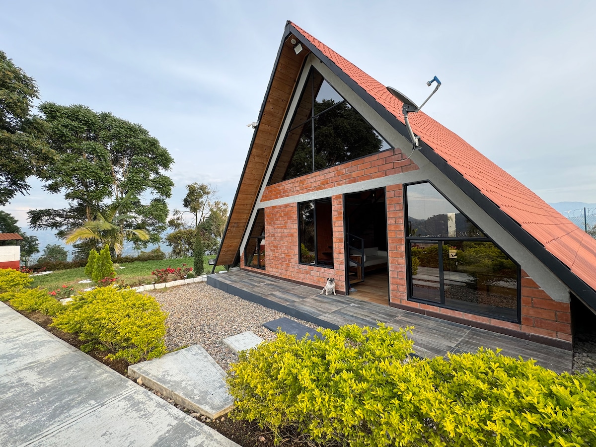 Hermosa cabaña de 2 pisos, ideal para 4 personas, con 2 habitaciones, 2 baños, cama king zise, malla catamarán, cocina, yacuzzi, zona barbacoa. Extraordinaria vista a uno de los picos más altos de los farallones de pance.
