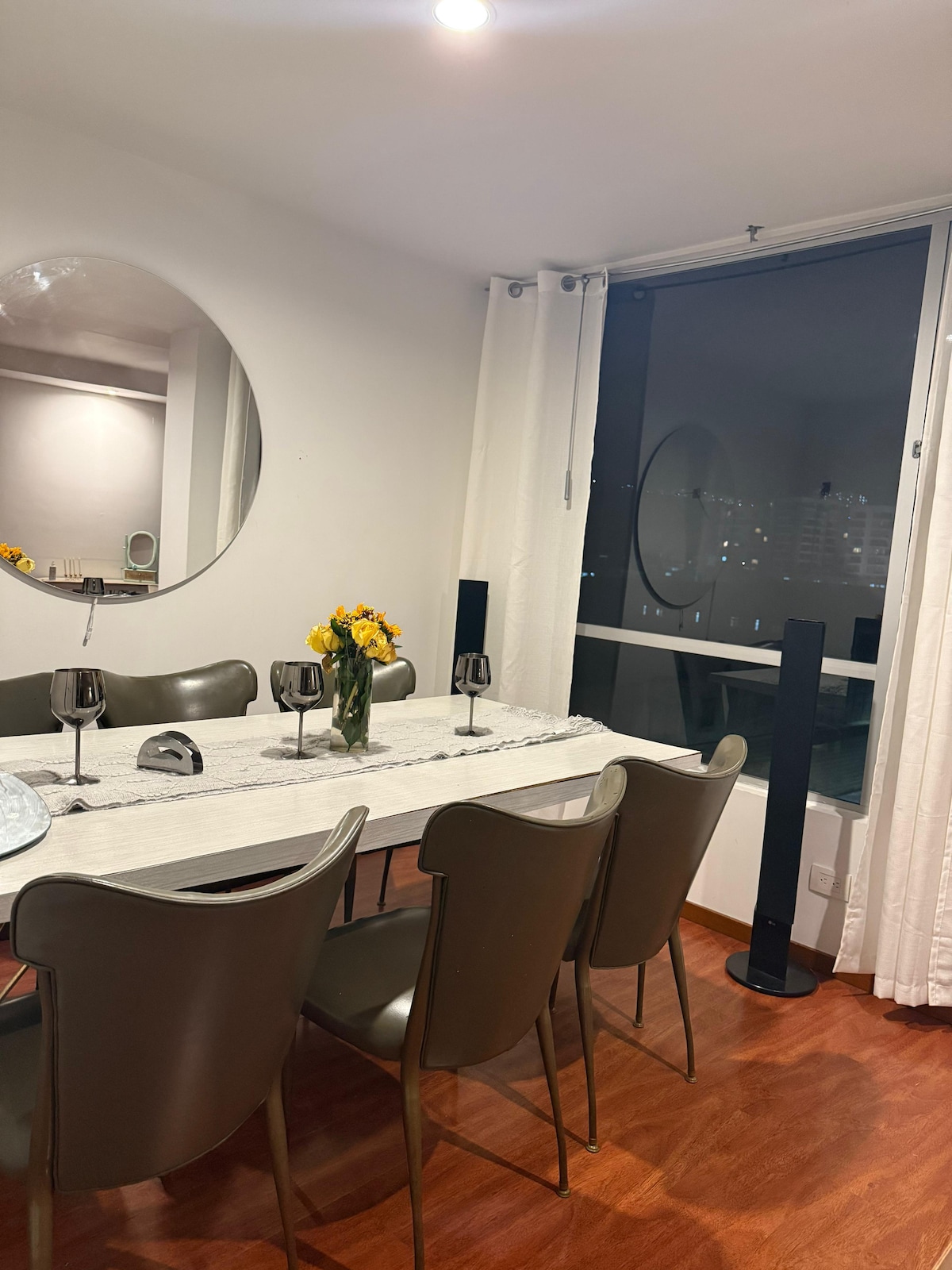 Apartamento nuevo en el sector norte de Popayán, con excelente iluminación linda vista, una decoración acogedora y moderna ; cuenta con tres habitaciones: la principal con cama doble y baño privado ,las otras con cama sencilla, un sofacama doble, cocina integral, sala comedor, balcón, zona de ropas, smartTV Wifi, parqueadero cubierto. El edificio tiene piscina, cancha de squach, gimnasio, salón social, cercano a centros comerciales, supermercados y restaurantes. Ideal para cuatro personas.