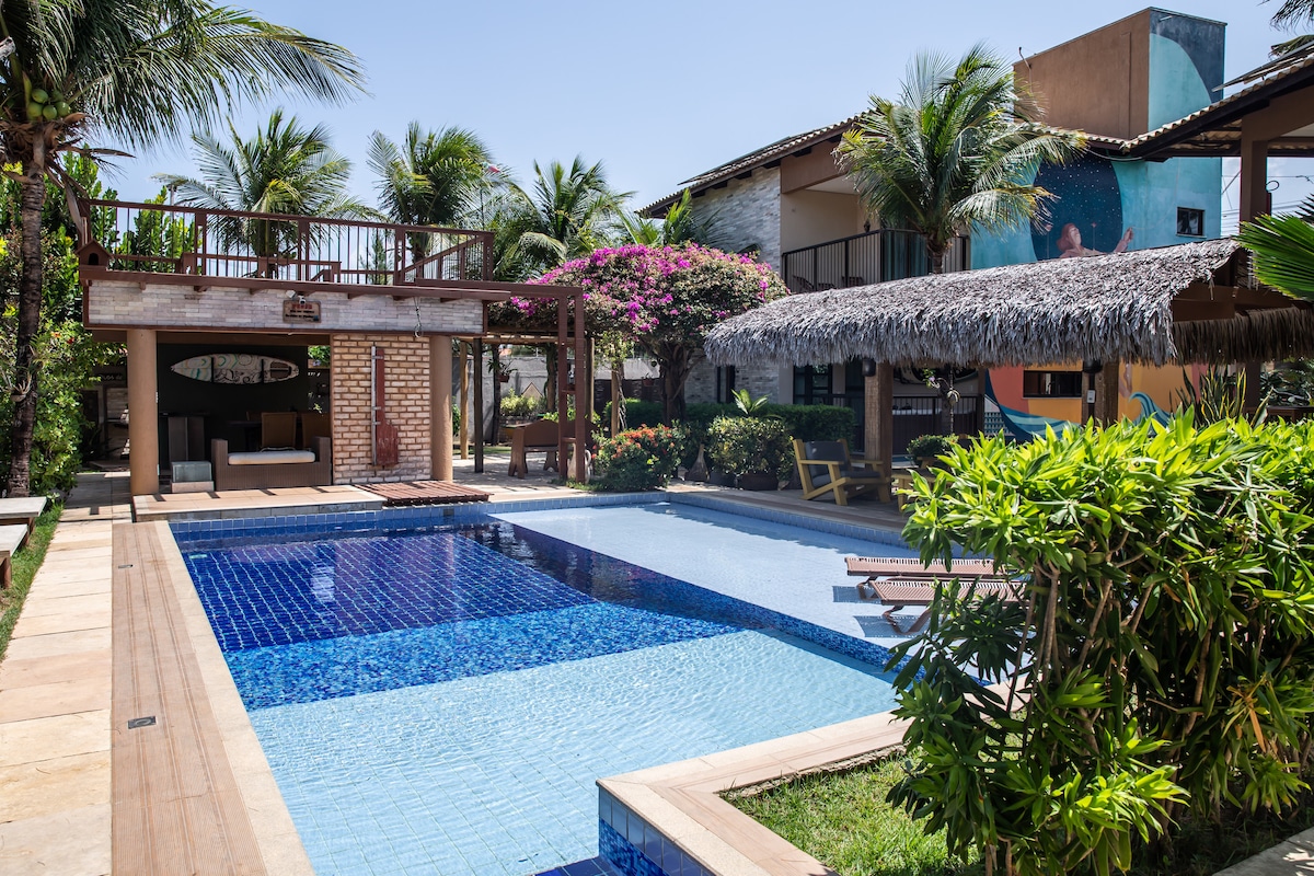 Wake up with the ocean breeze at Casa Brisa Costeira — just steps from the beach and a short 650-meter walk from central Cumbuco. Enjoy a cozy, spacious three-bedroom coastal home with an ocean-view master suite featuring a hydromassage bathtub, large bathrooms, a fully equipped kitchen, pool, lush garden, BBQ and dining areas, a peaceful zen zone, and an ocean-view terrace — perfect for relaxed stays near the sea, shared with your favorite people.