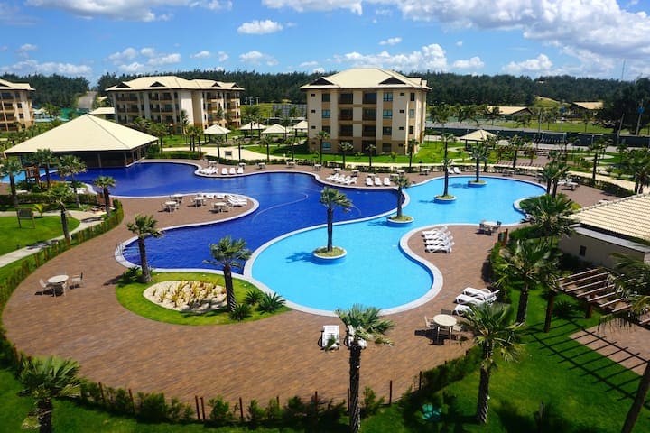 We invite you and your family to discover the nature of our Ceará, staying in our cozy and modern ground floor apartment, prepared with great care. Located in the Waiwai Cumbuco paradise, the resort-style apartment offers: infinity pool, children's pool, pool bar, restaurant, gym, playground, soccer field, tennis court, skating rink, beach tennis, spa (upon payment ). obs: electricity consumed will be charged at the end.