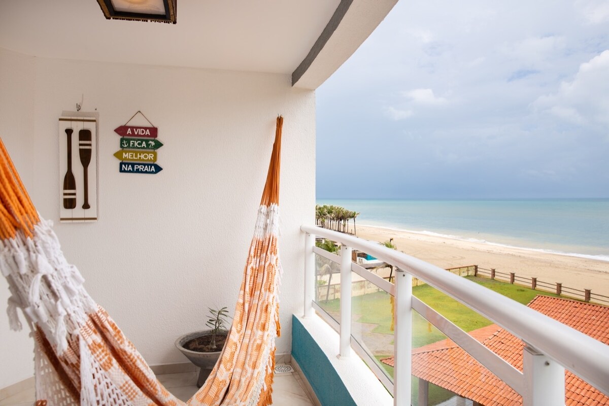 Stay at the closest spot to the beach 🏖️ in Cumbuco. Open your windows🪟 and enjoy the ocean breeze 🌬️and the sound of the waves 🌊directly from your bed🛏️. Spacious apartment (119 m²) directly on the beach in Cumbuco. 2 bedrooms, 2 bathrooms, large living room everyone with AC and big terrace with direct pool access. Perfect for long stays with a europe washing machine, big fridge, and private kite locker. Enjoy stunning views and relaxation on your private terrace