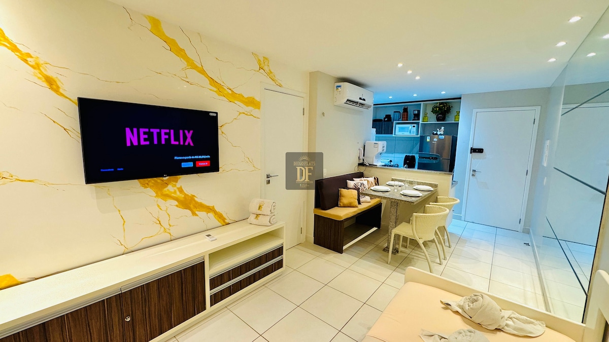 With a balcony and pool views, the property offers the perfect balance between comfort and practicality. The kitchen is equipped for you to prepare your meals with ease, and the environment is air-conditioned with split air conditioning in the suite and in the living room. Suite with queen-size bed and bed linen and towels included, Smart TVs, high-speed Wi-Fi, free parking, Condominium with full leisure facilities right on the beach. Perfect for those looking for comfort and an location!