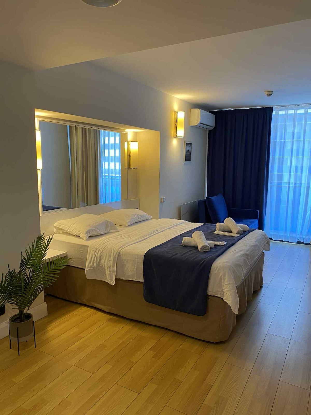 Boho-style studio in the historical center of Batumi — Porta Batumi Tower 🌅 Panoramic windows with a breathtaking view of the sea, mountains, and city - Bathtub! - Perfect cleanliness and freshness! - Excellent soundproofing! - Warm floors! - Many elevators that work without delays 📍 Nearby: 🏛 The Sea, Old Town, Europe Square, boulevard, restaurants and cafes are just 5 minutes away 🛒 Supermarkets, pharmacies, hookah bars and bars are nearby 🚘 Convenient parking near the house