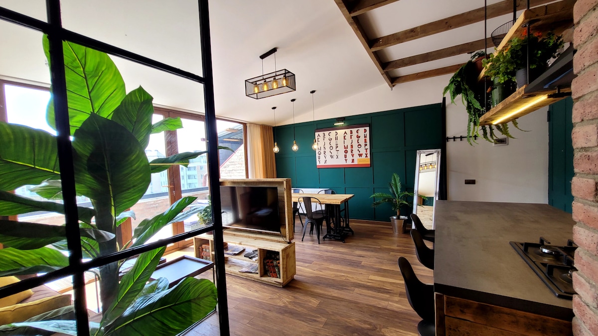 Loft is located in one of the most charming districts of old Tbilisi - Vera, on the top 12th floor, with a terrace, overlooking a breathtaking city view. A must visit Wine factory #1 with wide variety of bars and restaurants is just minutes walk away. The interior in vintage industrial style is a work of a local award winning designer. Floor to ceiling windows provide plenty of sunshine, natural light and beautiful views, but there are also heavy curtains for daytime dreamers:)