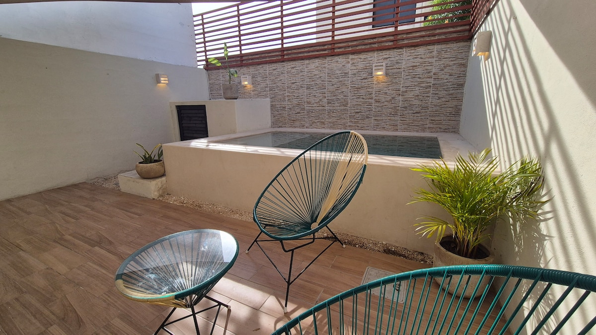 Desconecta de tus preocupaciones en este espacio amplio y sereno. A tan solo 40 minutos de la playa y 20 minutos del Centro y Paseo de Montejo, con todas las amenidades y servicios. Cerca de plazas comerciales, transporte público, etc. El espacio es completamente privado, tranquilo y seguro, cuenta con jardines y alberca , Lista para llegar y sentirse como en casa