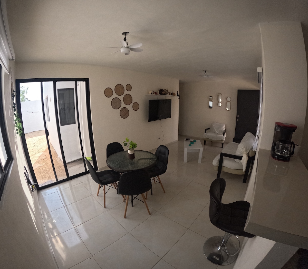 🌴En Kuxtal podrás disfrutar de una estancia cómoda, segura y tranquila, ideal para negocios o vacaciones. La casa aloja cómodamente a 5 personas (4 adultos + 1 menor) o, si lo deseas, hasta 9 huéspedes utilizando las hamacas disponibles. 📡Se trata de una casa inteligente que ofrece acceso autónomo para mayor comodidad y seguridad. 📍Estamos en la zona poniente de Mérida, en Paseos de Opichén, con acceso inmediato a Periférico, permitiendo el desplazamiento rápido a cualquier punto de la ciudad