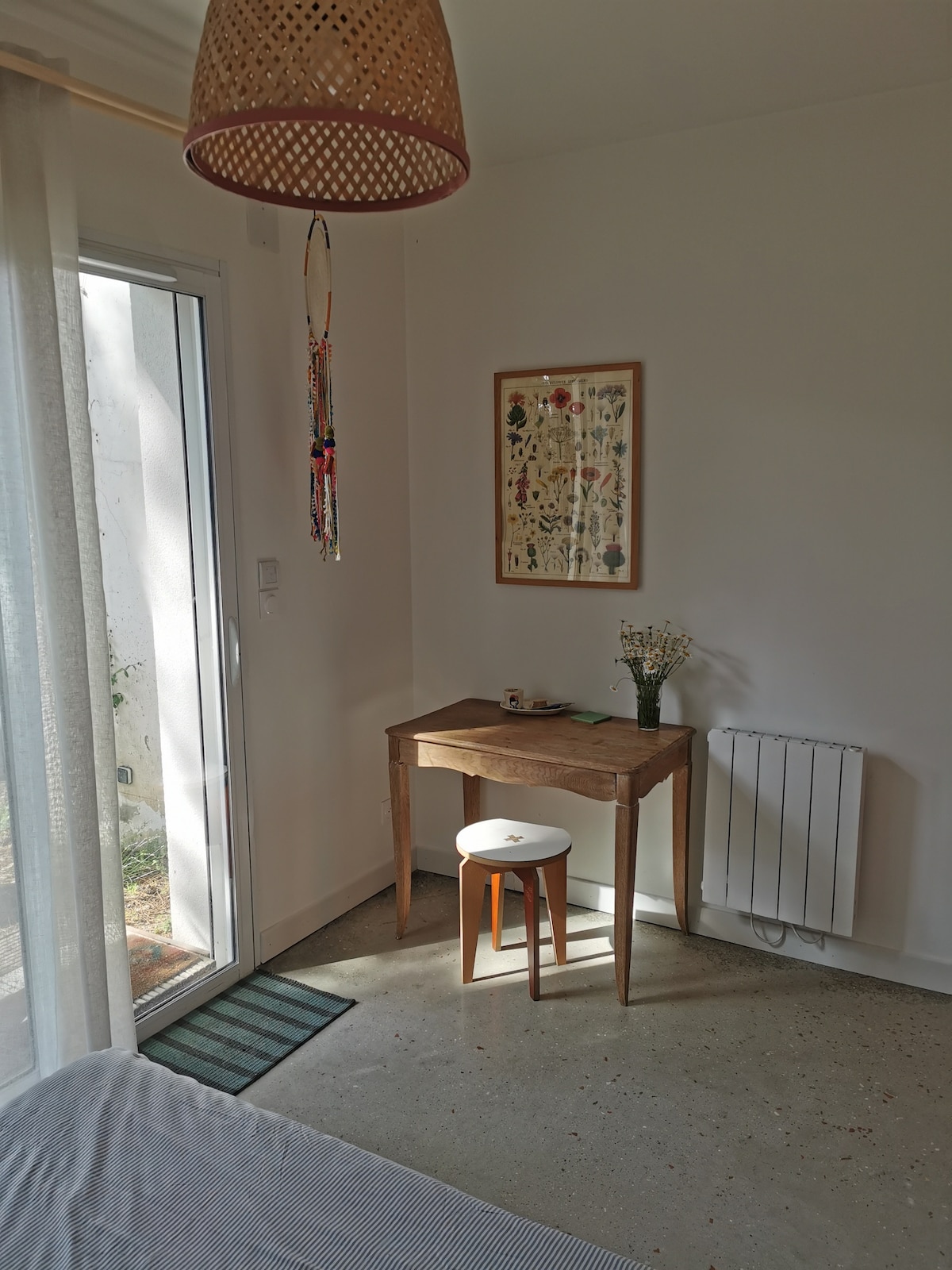 Charmante petite suite privée de 13m2 comprenant une salle de bain independante et une pièce principale avec coin cuisine tout équipé et canapé lit. Vous disposez d'une terrasse indépendante devant le logement avec coin repas. Le logement est pour deux personnes. Il n'est pas possible de rajouter un lit bébé ou une personne supplémentaire. Nous vivons sur site dans une maison à côté du logement mais il reste totalement indépendant.