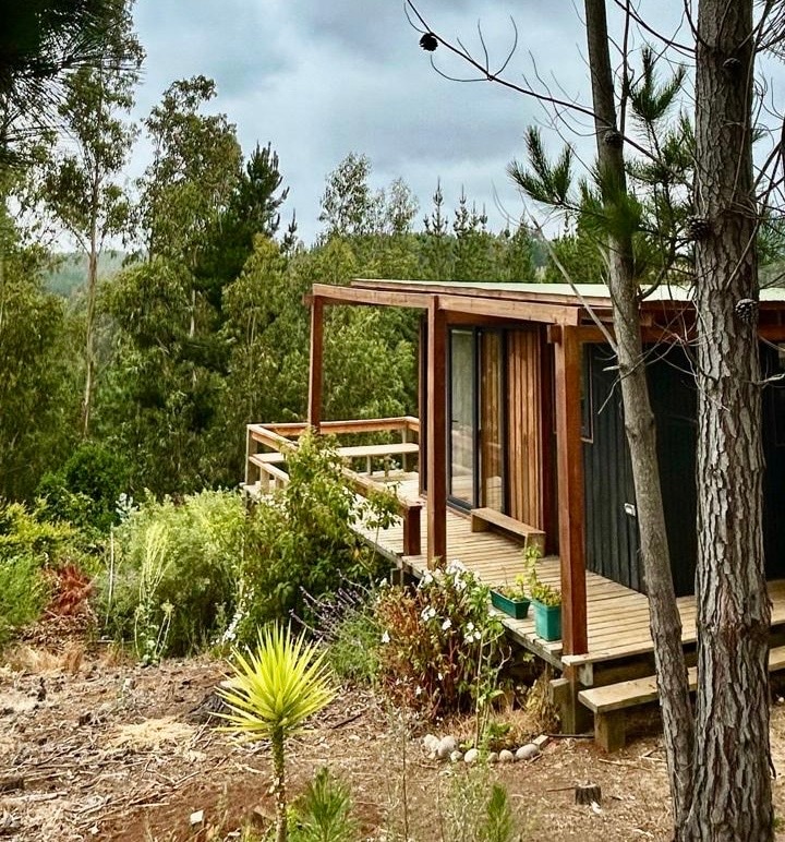 El bungalow se encuentra rodeado de bosque nativo, pudiendo tener contacto directo con flora y aves del lugar. Esta construido con maderas nobles y decorado con muebles de diseño propio. Hot tub privado y terraza equipada. Lugar perfecto para desconectar y maravillarse del cielo estrellado