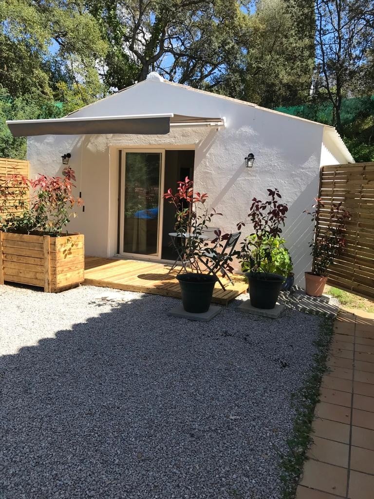 Studio indépendant collé à villa occupée par les propriétaires composé d'une petite pièce (coin cuisine et repas, fauteuils, téléviseur réception TNT) d'un cabinet de toilette (cabine douche, lavabo et toilette) et du coin nuit mezzanine basse (1m50 dans sa plus grande hauteur) équipée d'un lit en 140, d'un lit 170x70 qui peut convenir à un enfant (3 à 10 ans env.)de deux chevets, d'un rangement, sur lequel est posé le téléviseur (décodeur orange). On accède à la mezzanine par un escalier bois.