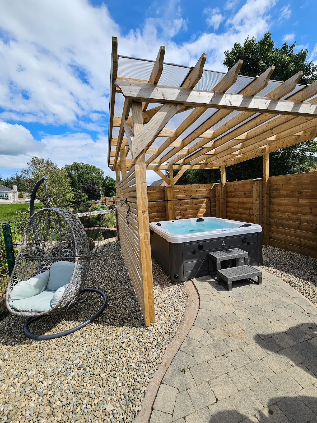 Step into your own private oasis and immerse yourselves in pure relaxation. Picture this: you and your beloved, basking in the warmth of a luxurious hot tub, surrounded by the soothing sounds of the flowing river. Feel the stress melt away as you gaze out at the breathtaking views, with nature's beauty unfolding before your eyes. Book your stay now and let the enchantment of our riverfront Air BnB sweep you off your feet. Your romantic escape awaits! 🌊💑 1 hour from Belfast. Airfryer & double hob