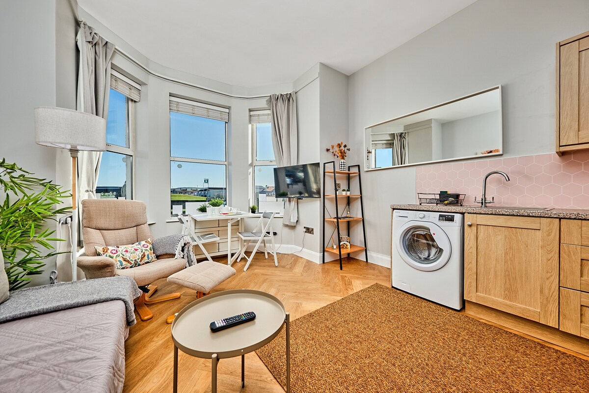 Escape to Princess Yellow 2, a bright, stylish first-floor beachside apartment in Portrush with direct beach access. This unique retreat is the perfect base for exploring the Causeway Coast and comfortably sleeps up to 5 guests. Enjoy modern amenities, a fully equipped kitchen, and a prime central location steps from the famous Harbour and sandy beaches. Ideal for families and adventurers. Free on-street parking is available outside the property.