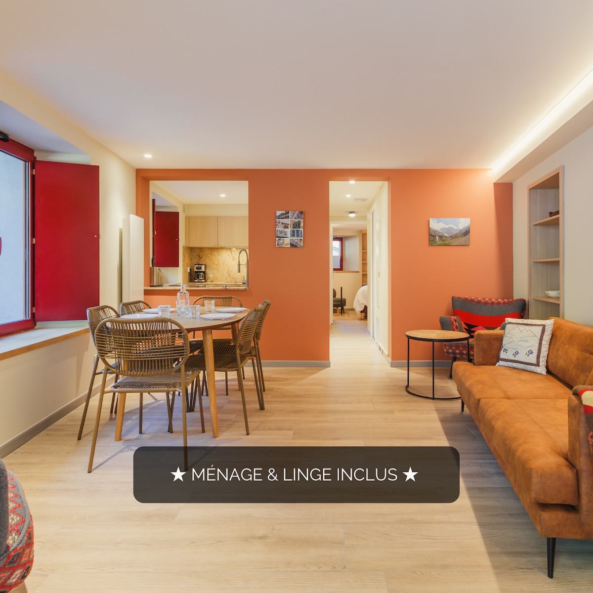 Appartement 100% cocooning, situé au deuxième étage d’une petite résidence. Emplacement calme tout en étant situé au coeur du village, avec un grand parking non privé. Un nid douillet de 35 m2 pour 4 personnes, chaleureux et raffiné. 100 m2 de terrasse et jardin privatif. Couchage: 1 chambre avec un lit en 140x190 et un grand dressing, Canapé lit avec un véritable matelas en 140x190 Lits faits à l’arrivée. Cuisine toute équipée. Salle de bain avec douche, WC indépendant. Draps de bain fournis.