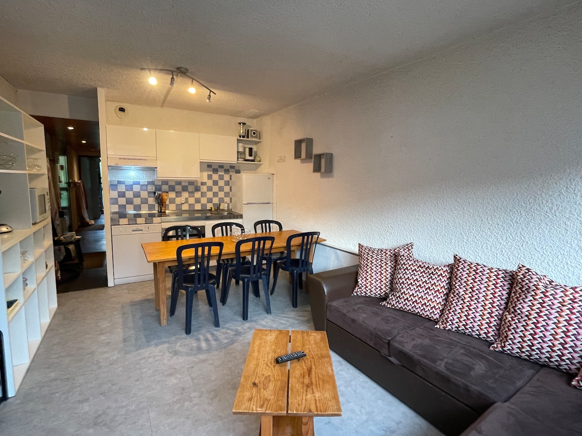 Studio 24m² 2** 3e étage d'une Résidence avec ascenseur, 300m des télécabines pour ski alpin au cirque du Lys, des Thermes pour cures thermales , de la piscine, patinoire, du centre ville, et de la gare routière départ des navettes pour le Pont d'Espagne pour de belles randonnées été comme hiver, vous pouvez tout faire à pied. Parking public gratuit et payant à proximité. 4 couchages, 1 convertible 2 adultes, 2 lits superposés pour 2 enfants (la partie haute ne convient pas aux moins de 6 ans).