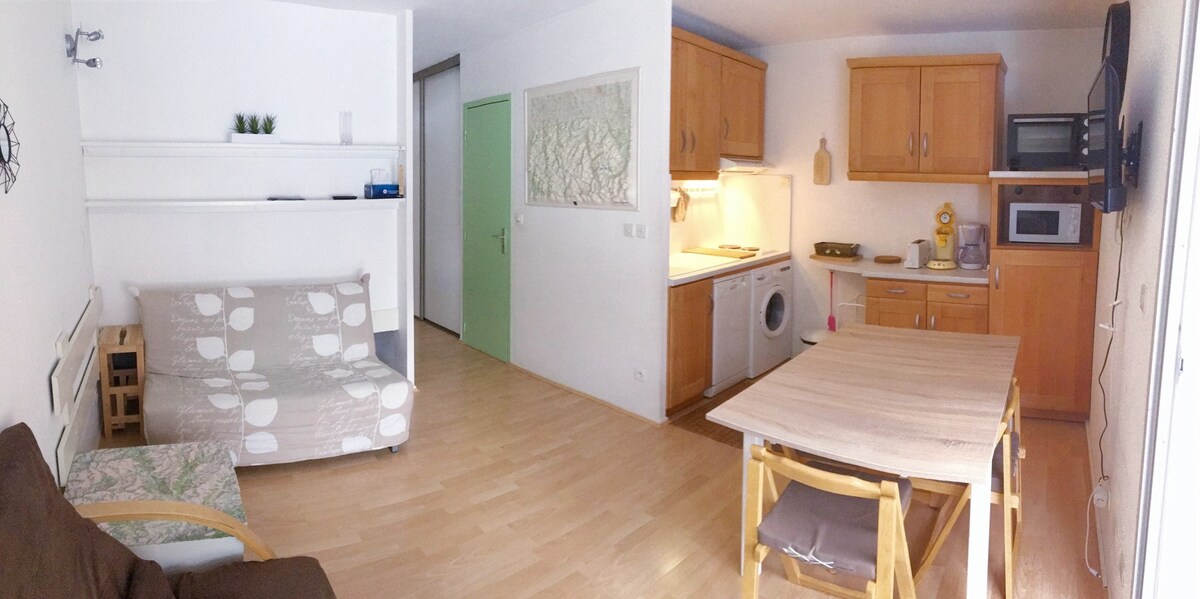 Appartement clair et lumineux, situé en plein centre-ville à proximité de tout, télécabine du Lys, les thermes césar, office de tourisme, bain du rochers avec vue sur les montagnes et sur le gave depuis les fenêtres de l'appartement. idéalement 4 pers, possible 6. Linge de lit, de cuisine et toilette non fournis. Alcôve avec lits superposés 1 personnes, coin chambre, coin cuisine, nombreux placards. Equipement bébé sur place. 1 placard à skis individuel Location weekend / semaine / cure