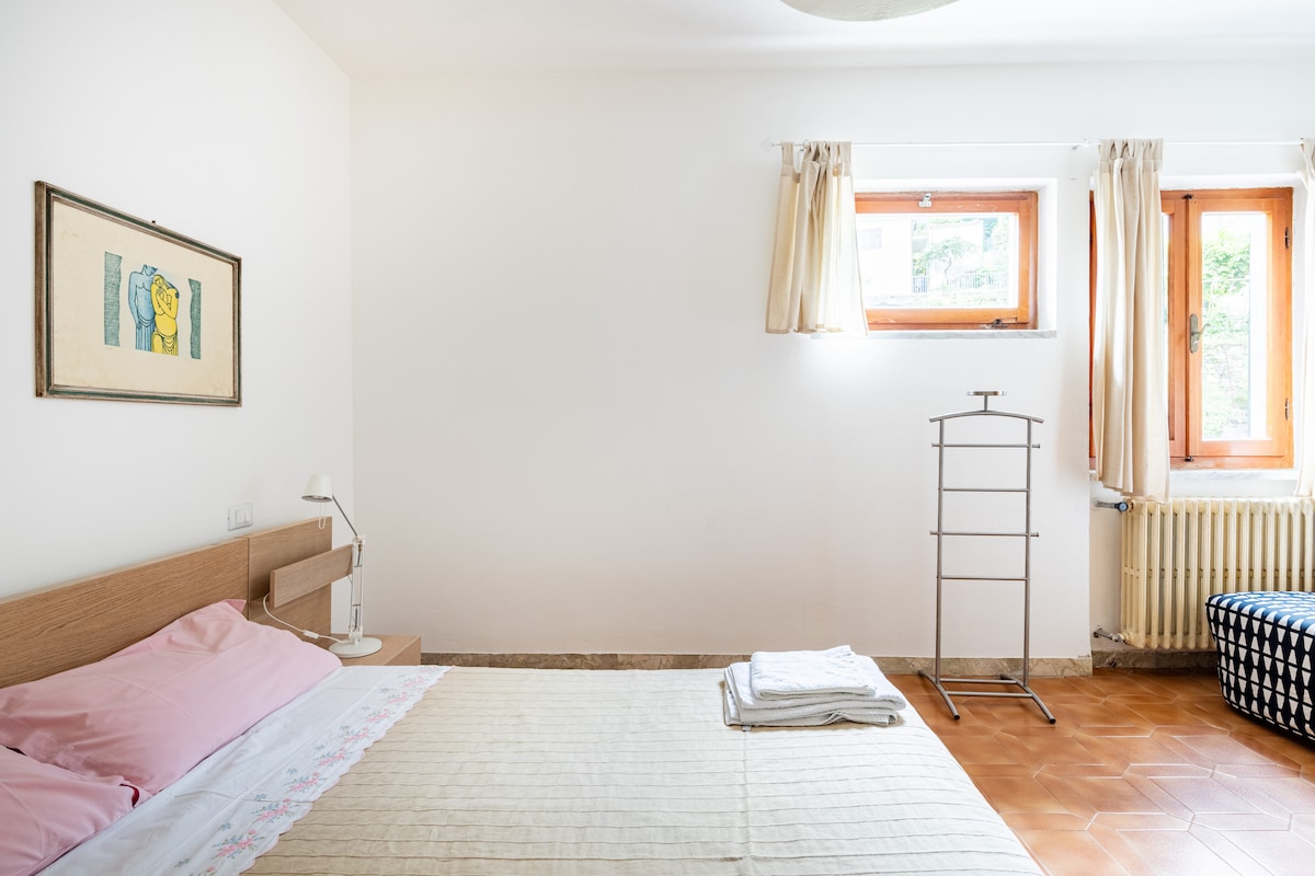 Casa di 90 mq , 2° piano del palazzo , avrete a disposizione un appartamento accogliente per le vostre vacanze. Un salotto , una cucina e 2 camere da letto : una matrimoniale e una con due letti singoli, due terrazze , dalla terrazza della Sala si possono vedere le Cave di marmo Bianco. Stanze provviste di armadi come da foto, ogni stanza ha il relativo bagno.
