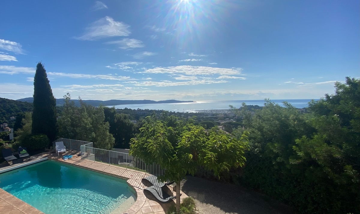 A 18 km de Saint Tropez et à 5 mn du centre ville de Cavalaire sur Mer, la villa de 170 m2 environ , classée 3*, est idéalement située dans un quartier recherché et très calme, proche des commodités et à 2 kms de la plage de sable ! Véritable coup de cœur pour la luminosité de cette maison avec ses baies vitrées, le volume de la pièce de vie , son jardin arboré et ses différentes terrasses (côté piscine, jardin, mer ou colline )