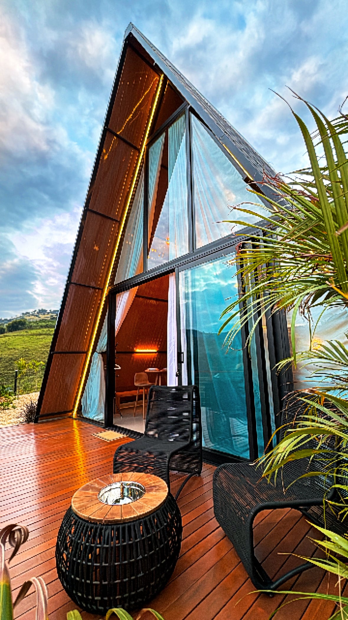 A @cabanaamalfi foi construída na Fazenda Chapadao em Serra Negra. Local com hidro, ar condicionado, movelaria nova e lareira em um ambiente super charmoso com ofurô exclusivo e cineminha. A Fazenda conta com restaurante, programação cultural e também o maior balanço do Estado de SP que foi destaque em vários veículos de imprensa. Local hospeda bem um casal, mas tem um futon grande para mais duas crianças, por exemplo. Novinho e confortável!