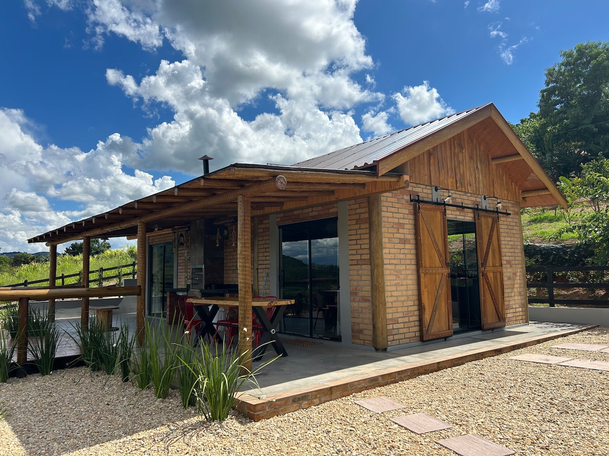 Chalé de Alvenaria de 40m²; 1 quarto de 9m²; Double bed box; TV de 21''(LED); fire stick, DVD;Ventilador de teto; Sala de Estar; Mini Cozinha equipada (pratos, copos e utensílios); Microondas; Frigobar; Cafeteira; sanduicheira; fogão elétrico 2 bocas;lareira;Varanda de 10m²; Comportam 2 pessoas. Na propriedade, sala de jogos, sala de convivência, piscina, trilhas, massagem, lago para pesca esportiva, cozinha compartilhada, redário, natureza aos pés da Serra da Mantiqueira.