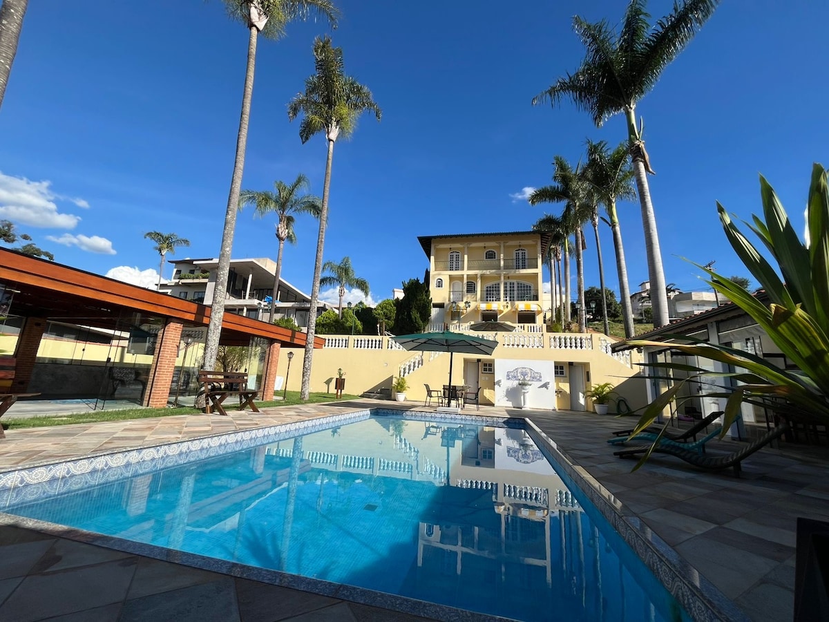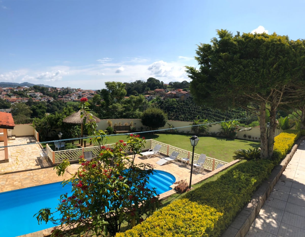 Finais de Semana Linda Chácara em Serra Negra * 6 dormitórios com ventilador de teto, até 20 pessoas * 9 banheiros * 3 banheiras de hidromassagem * Sala com lareira * Cozinha * 2 churrasqueiras * Fogão à lenha * Forno de barro para pizza * Piscina climatizada (aquecimento solar) com cascata e hidro * Campo de futebol e vôlei * Salão de Jogos (sinuca, pebolim e ping pong * Wi-Fi Fibra óptica * Canil * Sauna seca e úmida * Lago para pesca tilápia * Asfalto até a porta * Playground para crianças
