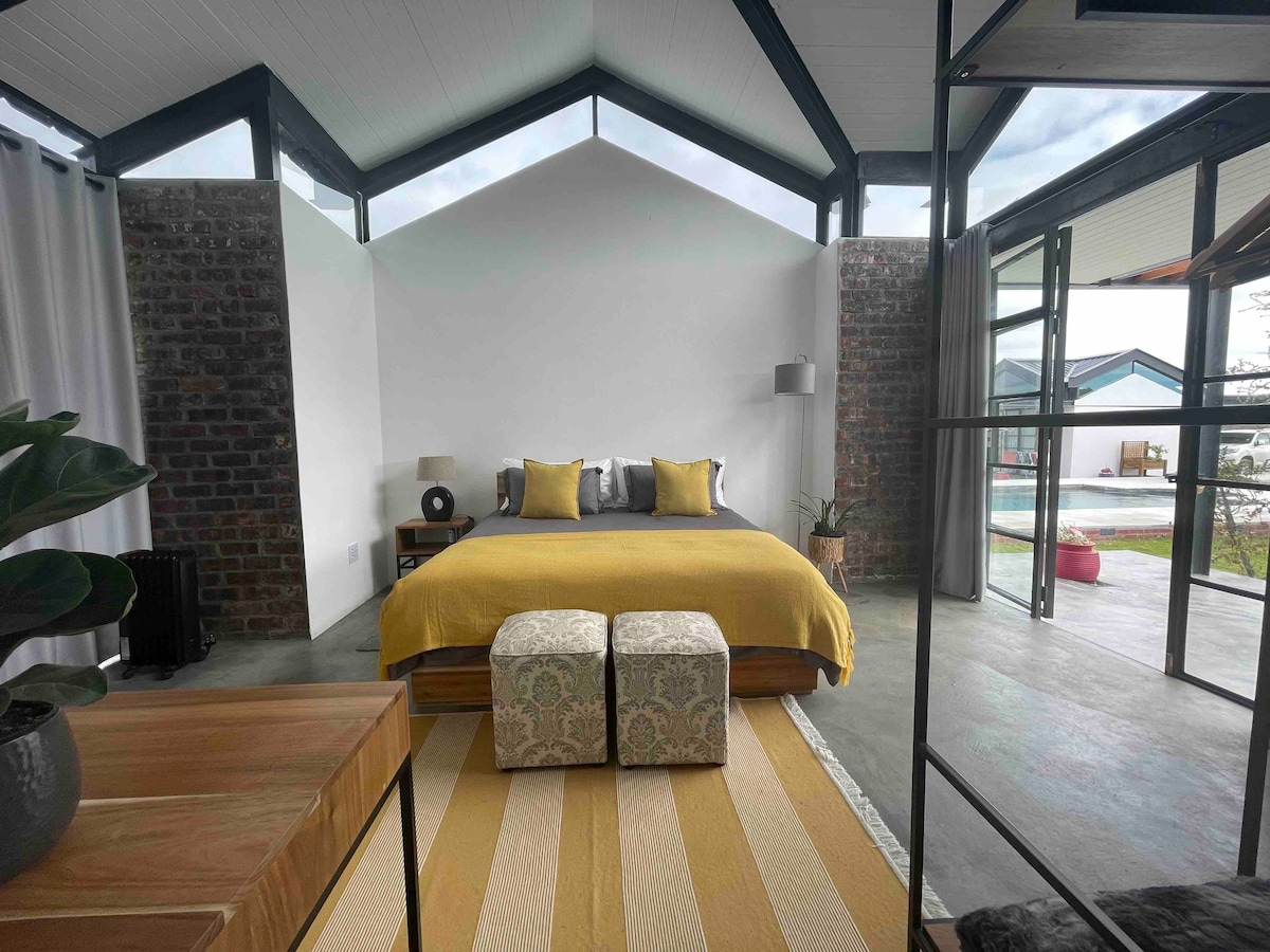 A tranquil indoor-outdoor living space ideal for couples or business travelers. The stylish studio opens up onto a large patio with braai. Enjoy our long summers outdoors! The studio has a separate entrance from the main house. Queen bed with open walk-in shower & separate toilette . It has fiber WI-FI, full DSTV, a tiny kitchenette with tea/coffee facilities, toaster, microwave, fridge & single induction plate. Secure onsite parking. We have 2 Small dogs for added security.