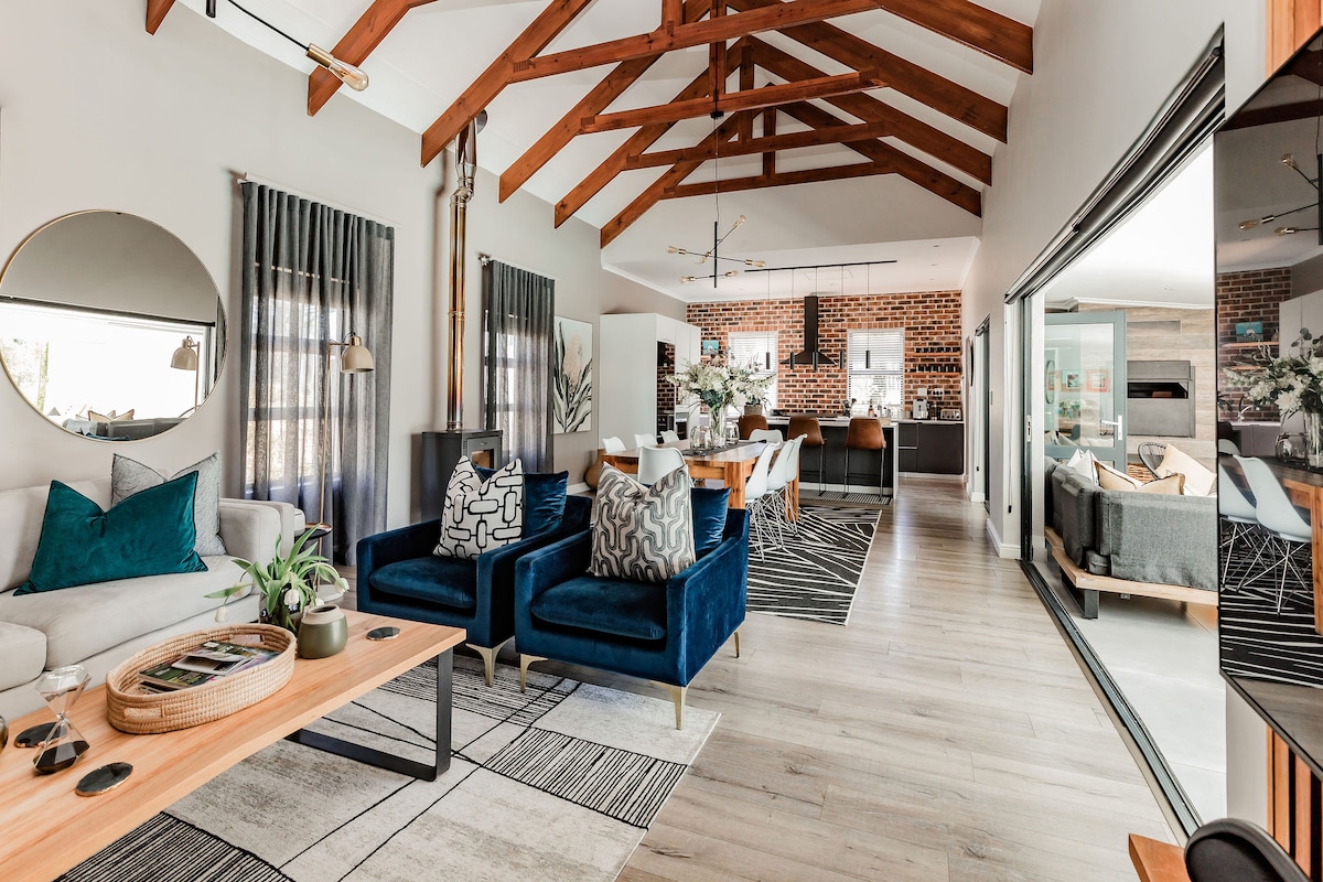 Eerstebosch Family Farm and self-catering cottages are more than a destination—it’s a unique luxury experience. Our property features four thoughtfully designed cottages. One-Bedroom Cottages (3 units): • A private patio with braai (BBQ) facilities • Wood-burning fireplace • Fully equipped kitchen with a dishwasher • Separate bathroom with a shower • Smart TV and free WiFi • Ceiling fans in the living area and air conditioning in the bedroom • Stylish, minimalist modern décor