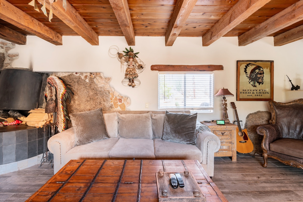 Escape to this rustic western-themed bunkhouse on two acres in North Scottsdale near Cave Creek. Unwind indoors or outside on your patio with Mexican beehive fireplace. The bunkhouse is a unique and casual place to stay...sort of like a cowboy museum, only better because you can cook and sleep here. Sleek and sophisticated it ain't, but it's clean, comfy, and lots of fun! No weddings or events per city of Scottsdale. TPT: 21439932. City license: 2036771