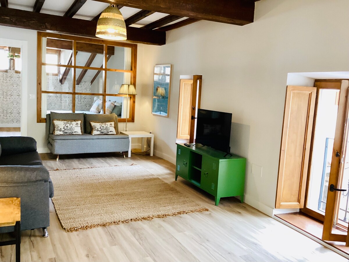 Apartamento de un dormitorio de 50m2, con cama de matrimonio y suelos de madera. Ubicado en planta baja, accesible en silla de ruedas con entrada privada. Baño completo equipado con ducha, Toallas, secador de pelo y papel higiénico. Zona de Cocina: Nevera, Cafetera, Microondas, Utensilios de cocina, Lavavajillas, Fogones, Tostadora Zona de estar con sofá- y TV de pantalla plana. Calefacción. Terraza Privada con acceso a las piscinas exteriores y jardín. Parking exterior gratuito