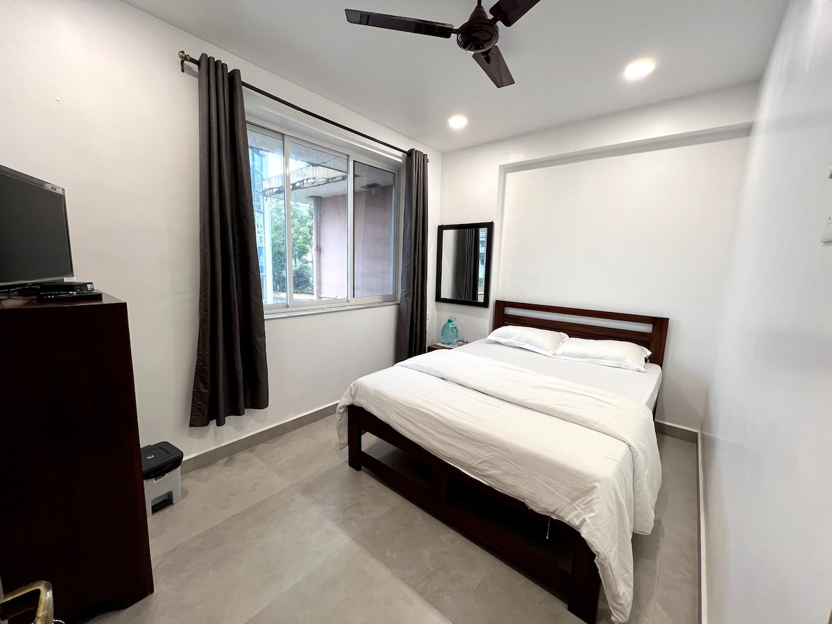 Kick back and relax in this calm, stylish spac. that is aesthetically designed keeping all the luxury vibes in mind.Tucked in a peaceful lane surrounded by greenery & Opposite a 5star hotel.The apt is a short 5min ride to one of the best beaches in SouthGoa. Packed with all appliances & a fully functional kitchen, you can easily stir a meal.The apt also has power backup incase of power cuts so that your WFH does not get disrupted.Equipped with high speed 150MBPS wifi connection for your WFH need