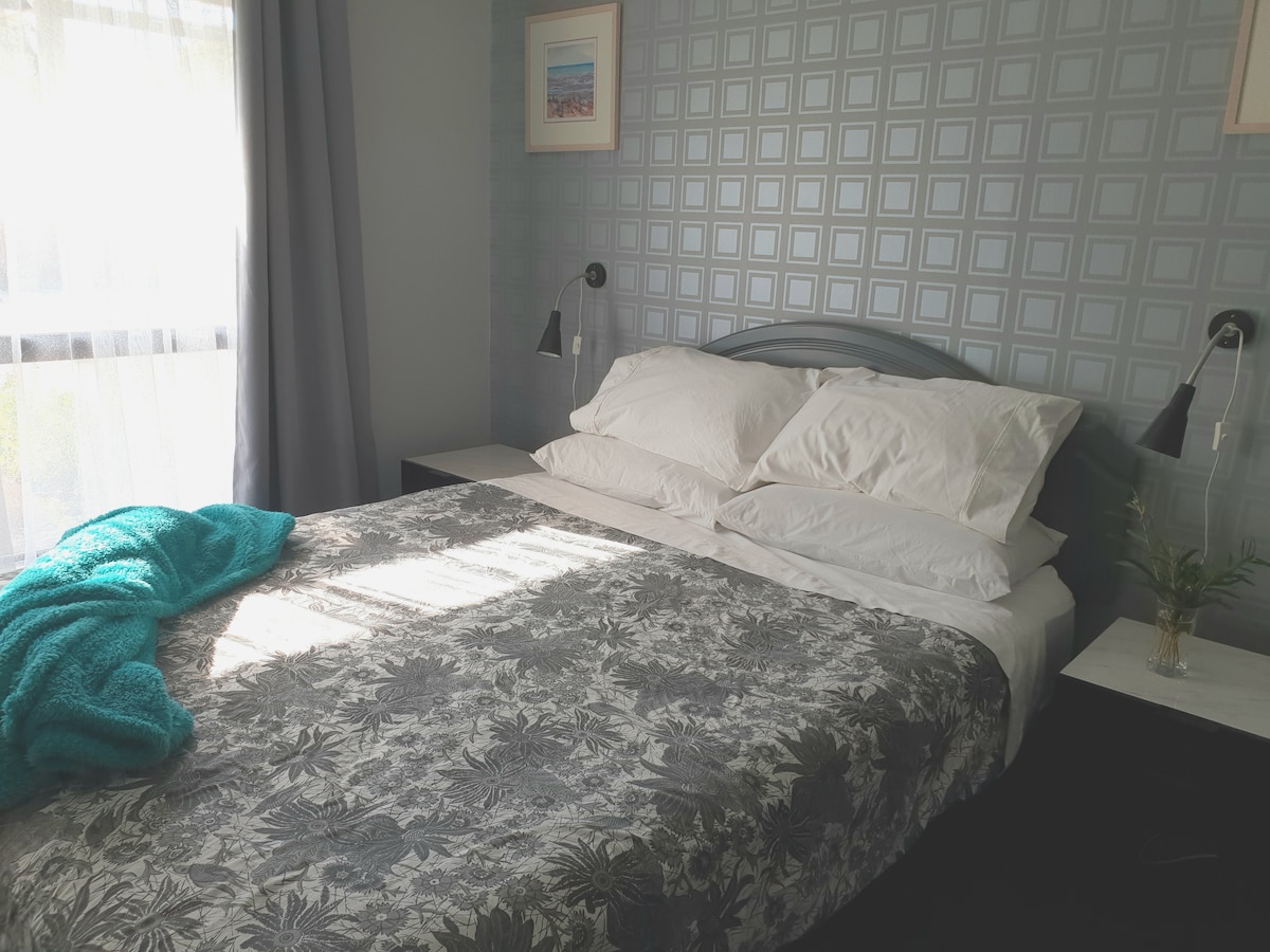 Silver Gypsy Flat adjoins our home. Key entry, secure steel window & door screens, a/c, table, chairs, pantry, induction cooktop, mini-oven, sandwich maker, frypan, kettle, toaster, pod coffee maker, juicer, glass oven, microwave, rice cooker, fridge/freezer, china, cutlery & glasses. Sofa bed, new 50" tv, lamps, queen bed, desk, chaise lounge, walk-in robe & ensuite, pillows, quilts & linen. Private garden, BBQ, patio table, chairs, brolly & free offroad parking. Late arrivals' Key Lock.