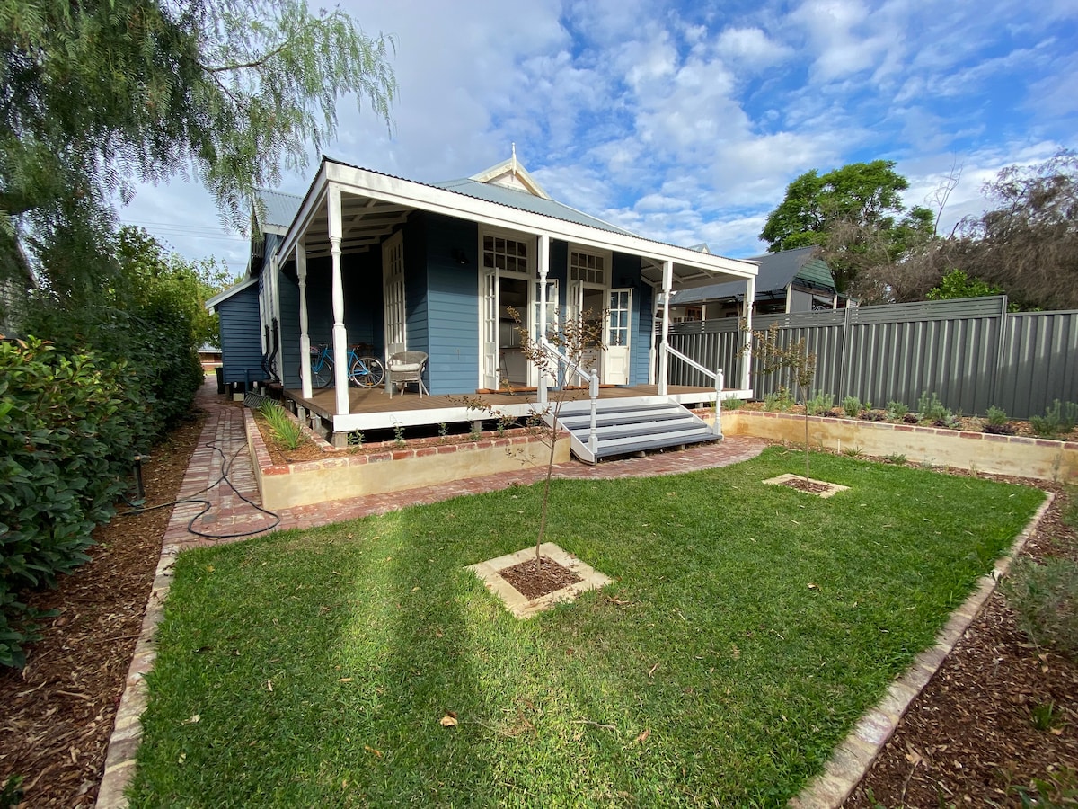 A charming weatherboard cottage, lovingly restored and extended, with beautiful period features. Sit on the veranda and enjoy the garden and birds. 1 queen bed, 4 single beds and a portacot. The kitchen, bathrooms and laundry are new with everything you need. Walkable to Bassendean cafes and restaurants, shopping centre with grocery store, train station and the Swan River. 10 min drive from the airport. On a quiet peaceful street where you can park easily right at the door. Reg # STRA6054CQ773Q