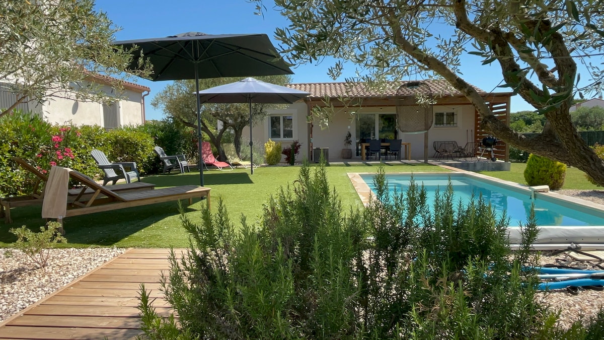 Ce logement,indépendant,paisible, avec sa terrasse,sa pergola et son jardin privatif,offre un séjour détente pour un couple ou une petite famille ayant besoin de soleil,de repos,et de baignade dans une belle piscine, ouverte de début mai à fin septembre. Le logement est tres bien équipé, cafetière filtre, bouilloire,four,four micro onde,plaque de cuisson, machine à laver,TV,internet haut debit, climatisation,literie de qualité,draps et serviettes et torchons fournis. une supérette ouvre bientôt