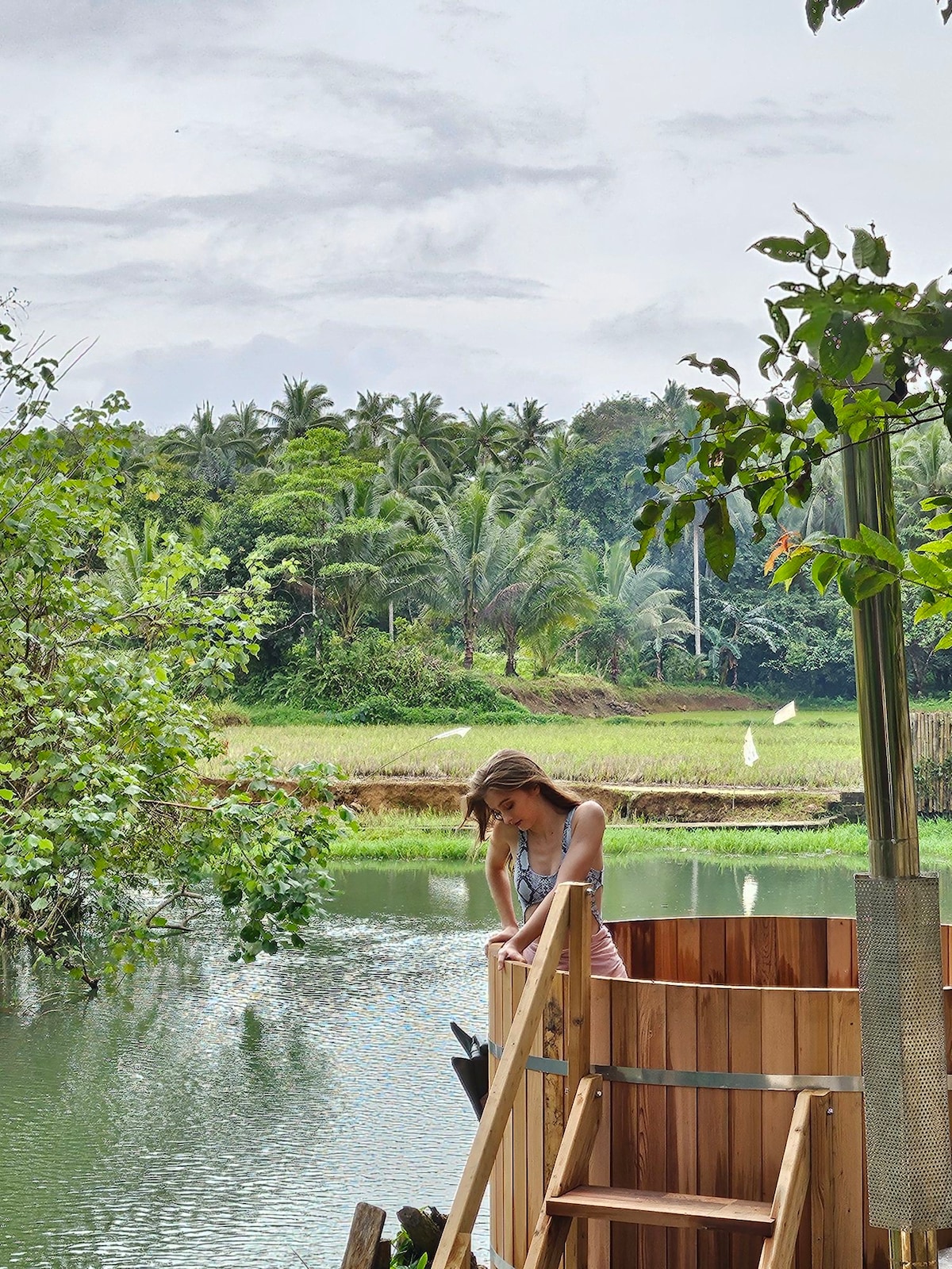 Escape the chaos and enter a world of traquility. this property is located in Cavinti, Laguna. surrounded by lush garden with river access & rice field view. all cabins has its own private patio & toilet & bath. amenities includes free usage of outdoor tub & private river access.