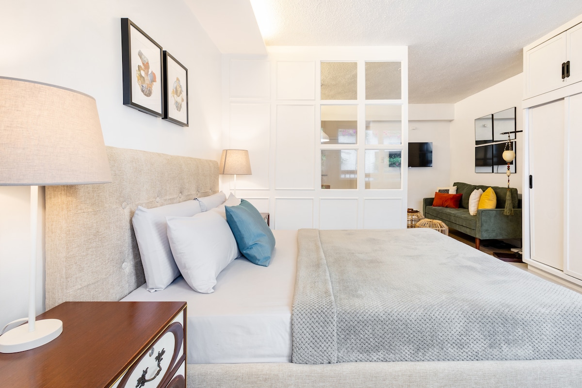 This beautiful & cozy studio is located in the heart of the city, just a short walk from all the major attractions. It features a comfortable queen-sized bed, a fully equipped kitchen, & a modern bathroom. Enjoy the stunning views of the city from your own private balcony. The perfect place for a romantic getaway or a solo adventure. Book now and experience the best of the city!
