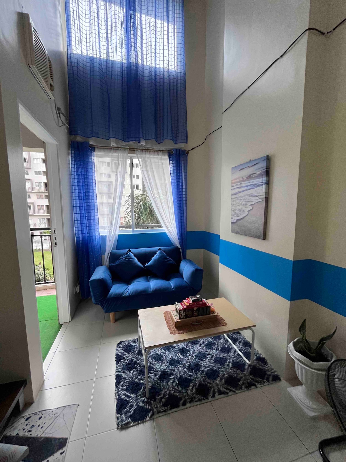 ⛰Magnificent view of mountains, with lift, with 24 hrs security/CCTV and concierge, 🅿️ Free Parking; 🏢 Fully Furnished and Air-conditioned 1-bedroom condo unit of 45sqm; 🛌 In the unit: 2 Queen Size Beds with linen and pillows and blankets, 1 double foldable bed 🛋 Table & chairs in the condo 📺 55'' 4K Android/ Smart TV with Cignal cable TV channel package; 🆗 Free Wi-Fi inside condos & in public areas (at the pools, on the beach etc); 🧽 Dishwashing materials are provided