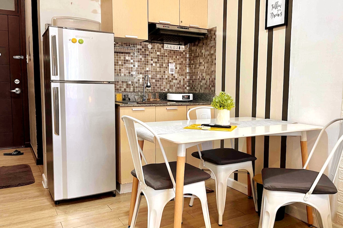 An Ayala property that’s not crowded and noisy. Wifi fast @ 100mbps. Walking distance from 2malls & restaurants. 2 areas to exit so you won’t get caught in traffic. From the property upon check out, always choose to turn left going at the back of FIORA mall to reach aguinaldo highway & rotonda Free welcome treats &nespresso capsule. Free use of board games. Cooking is allowed. Unlimited drinking water& FREE PARKING at the basement. NO DAY TRIP PLS meaning check in is only at 2pm onwards.