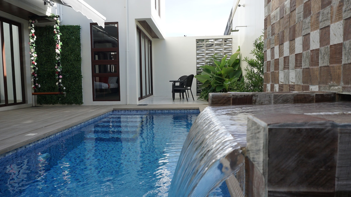 Celebrate any occasion w/ resort vibes in the city 🌴 Private pool, garden, friendly farm animals & Balinese-style pool house w/ bar & BBQ 🏊🌺 3BR Fully Air-Conditioned Villa ❄️ Cool comfort year-round. Cozy beds w/ Smart TV & streaming (Youtube. Netflix, Prime, HBO & Disney) 🛏️~₱1,000+ per guest (10 guests, max 12 Airbnb fees apply) ~₱800 cleaning fee per clean (based on stay length)~3 parking slots 🚗 Most essentials provided✨️ Let’s host you soon 🫶 Book now before dates fill up this☀️🌞🎉