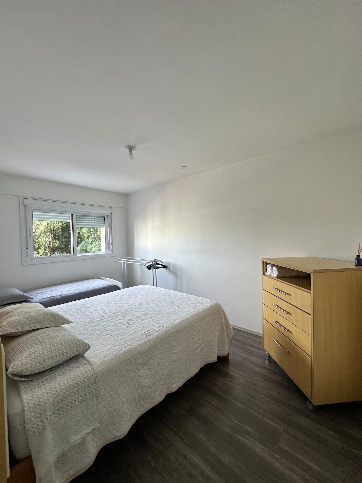 Apartamento localizado no centro de Caxias do Sul, a uma quadra da praça Dante Alighieri. Conta com um dormitório amplo com cama de casal, televisão, Wi-Fi, guarda roupa espaçoso, um banheiro, sala de estar, cozinha com microondas, fogão, mesa de jantar e lavanderia. O apartamento possui utensílios de cozinha, secador de cabelo, itens de higiene, lençol e toalhas de banho. Não dispomos de garagem, mas há dois estacionamentos rotativos na mesma quadra.