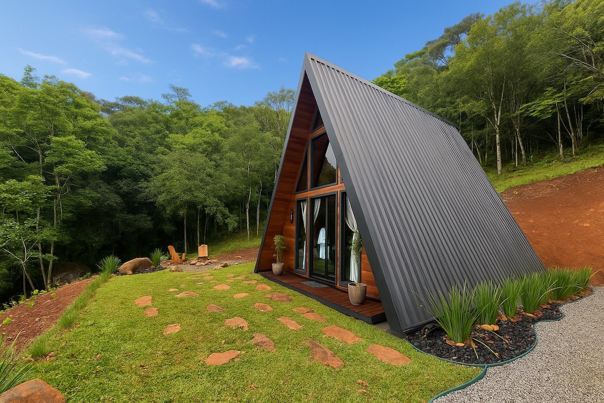 Uma cabana A frame imersa na mata nativa e nos parreirais de uma família de origem italiana. Projetada para acordar com o som dos pássaros e dormir com o barulho da água. O ponto alto fica logo na chegada, o deck fica em cima de uma cachoeira. A cozinha é completa com utensílios de ótima qualidade. O banheiro tem vista para a mata, banheira de imersão e amenities L'Occitane. Todos os cômodos são decorados nos mínimos detalhes. Ideal para relaxar e se colocar no compasso certo da vida.