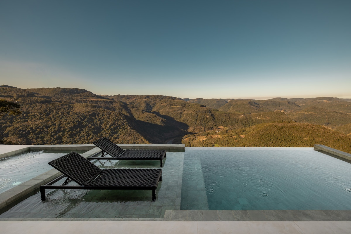 Nova Casa Castelcucco! Agora com piscina aquecida o ano todo. Inaugurada em dezembro de 2022, um projeto único e exclusivo, pensado em proporcionar o máximo conforto, privacidade e exclusividade aos hóspedes. No topo da montanha, com a vista mais incrível da serra e a mesma inspiração, a Itália! A casa hospeda até 6 pessoas e terá a disposição: banheira de hidromassagem, piscina privativa aquecida, balanço infinito, rede suspensa com vista para o vale, churrasqueira interna e muito mais!