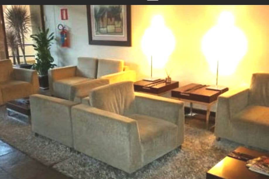 Meu espaço é ideal para turistas,viajantes de negócios e famílias.está em uma das melhores localização do Centro da Cidade.O espaço conta com garagem paga valor R$ 10,00 diária, tem portaria 24 horas, lavanderia paga,restaurantes, supermercados, farmácias, próximos.transporte público na porta do prédio.