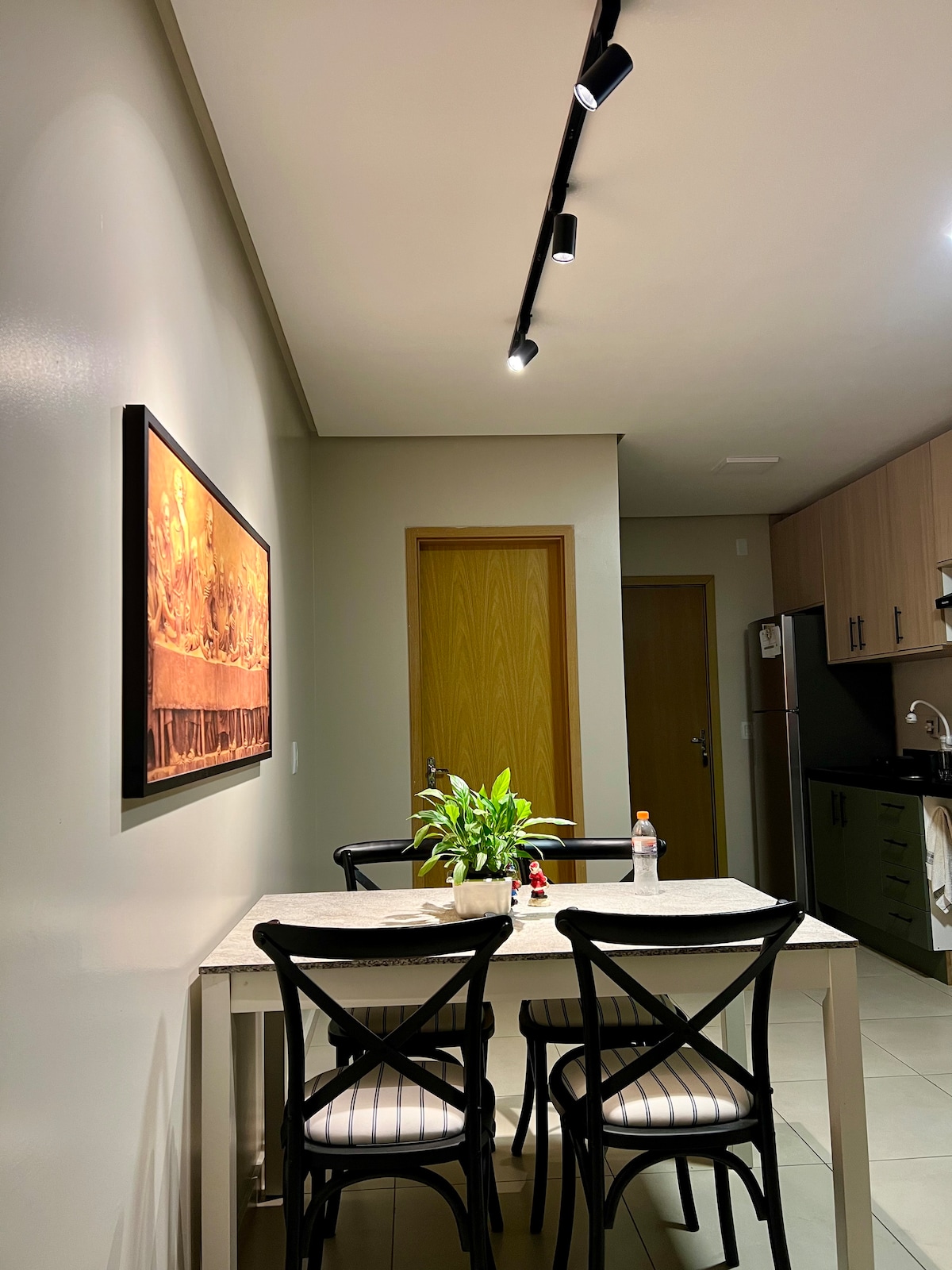 Flat decorado e completo. Cozinha com frigobar, fogão por indução, microondas, Airfryer e sanduicheira. Banheiro com chuveiro elétrico e disponibilizamos toalhas e sabonete líquido. Ideal para profissional de empresa ou casal de turistas. Condomínio super bem localizado no centro da cidade. Por favor, se atentar aos horários de check-in e check-out antes de realizar a reserva.