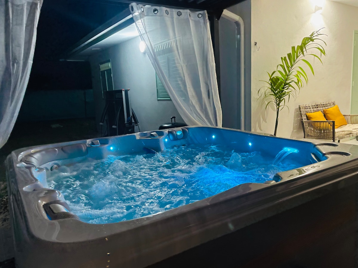 Appartement coquet, neuf , climatisé et vous détendre dans un lit king size avec TV et un grand canapé lit avec TV 65". Proche du bourg, de l'aéroport, d'un grand centre commercial à 20min. La terrasse de 15m2 pour les fumeurs avec un jacuzzi de 2 à 4 personnes et 2 parkings . La nuitée pour 4 personnes /min.1 nuit. A la semaine ou au mois, prix dégressif . Arrivée entre 13h et 21h/ départ entre 6h à 11h. L entrée et la sortie sont autonomes avec boîte à clés. Nous sommes classés 3 étoiles.