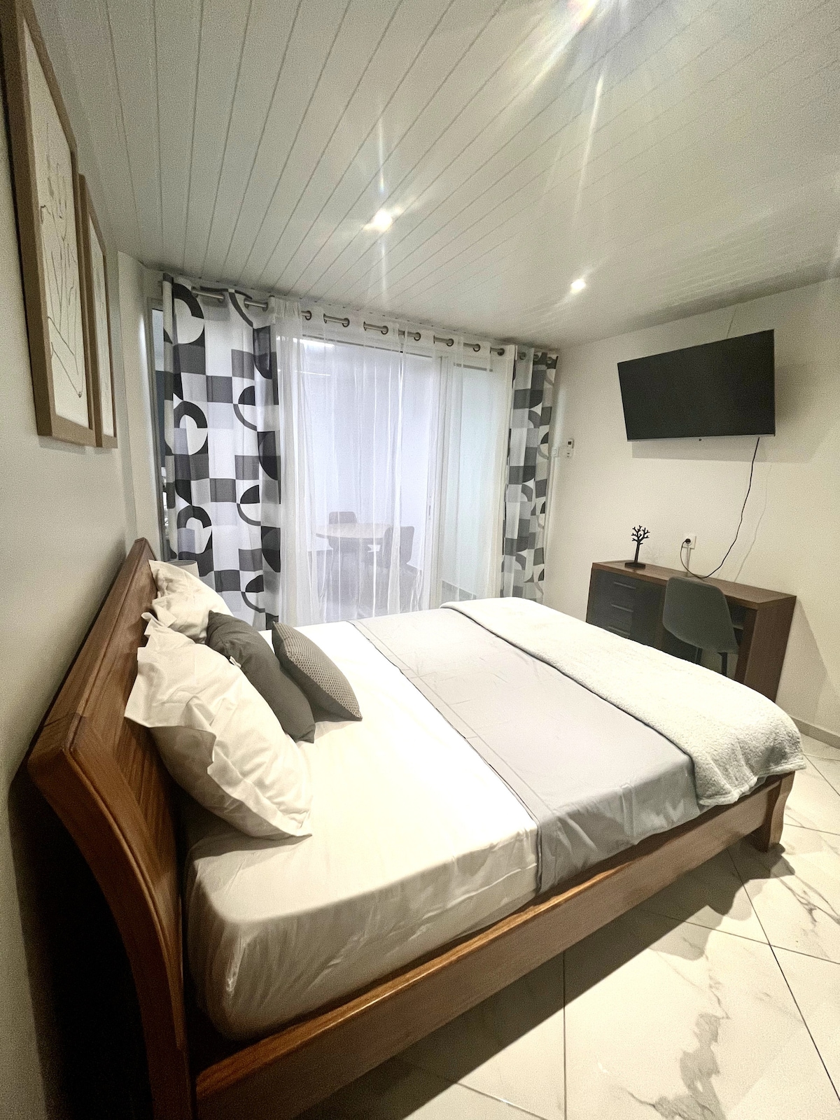 ✨ Découvrez le Toucan’Studio, votre refuge jungle au cœur de Cayenne 🌴. À 2 pas de la place des Palmistes, ce studio cosy et sécurisé au 3ᵉ étage séduit par sa luminosité et sa ventilation naturelle. Lit king size, climatisation + brasseur d’air et équipements complets : tout est pensé pour un séjour confortable et dépaysant en centre-ville.