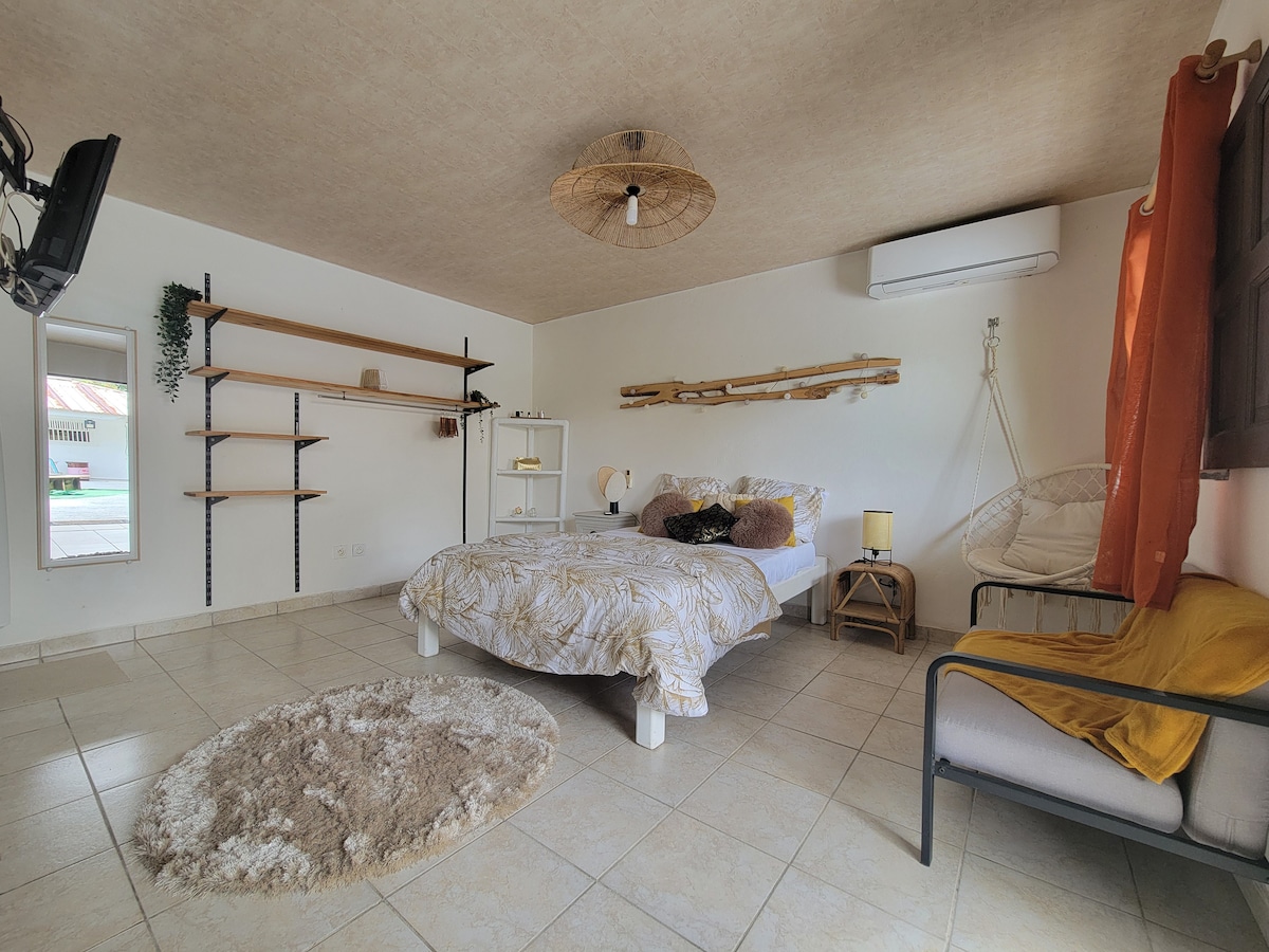 Studio calme dans une propriété privée. Il est idéal pour des séjours professionnels (à 5 min de l’ aéroport , à 15 min de Cayenne) et également pour un couple (avec 1 enfant) souhaitant visiter la Guyane. En cohabitation avec notre sympathique famille (2 enfants) nous souhaitons accueillir des personnes bienveillantes et respectueuses. Pendant votre séjour, vous bénéficierez d'un accès facile à plusieurs commodités : d’un supermarché, boulangerie, pharmacie et autres commodités.