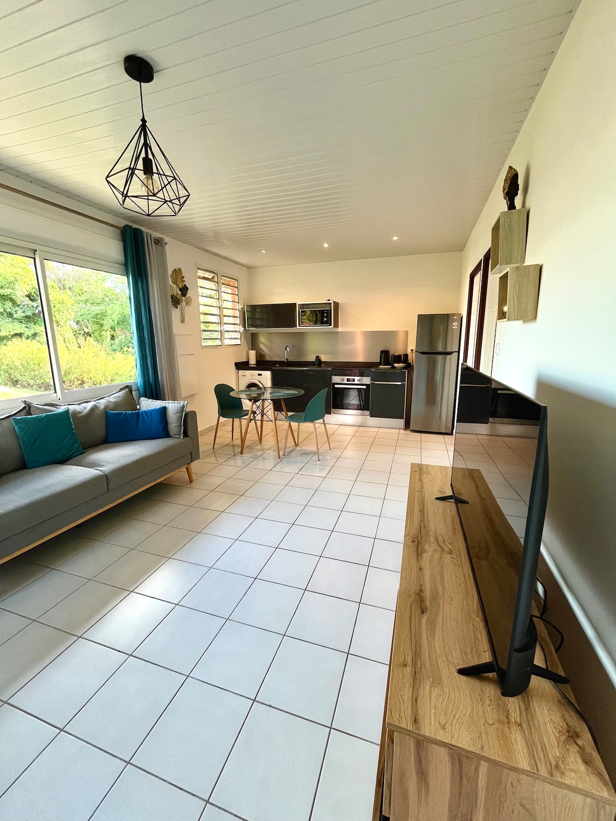 Charmant T2 au 2e étage d’une résidence moderne, idéal pour professionnels, couples ou petites familles. Calme et sans vis-à-vis, il offre une terrasse avec une table pour vos repas en extérieur, un espace bureau, un lit confortable et des équipements haut de gamme, dont une cave à vin. Alliant confort et raffinement, cet appartement est parfait pour se détendre. Situé à Cayenne, il vous garantit le calme de la périphérie tout en restant proche des commodités.