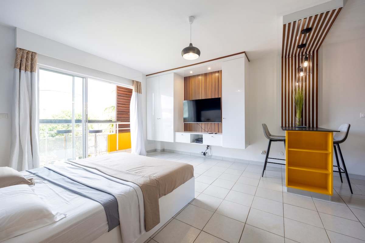 Charmant T2 au 2e étage d’une résidence moderne, idéal pour professionnels, couples ou petites familles. Calme et sans vis-à-vis, il offre une terrasse avec une table pour vos repas en extérieur, un espace bureau, un lit confortable et des équipements haut de gamme, dont une cave à vin. Alliant confort et raffinement, cet appartement est parfait pour se détendre. Situé à Cayenne, il vous garantit le calme de la périphérie tout en restant proche des commodités.