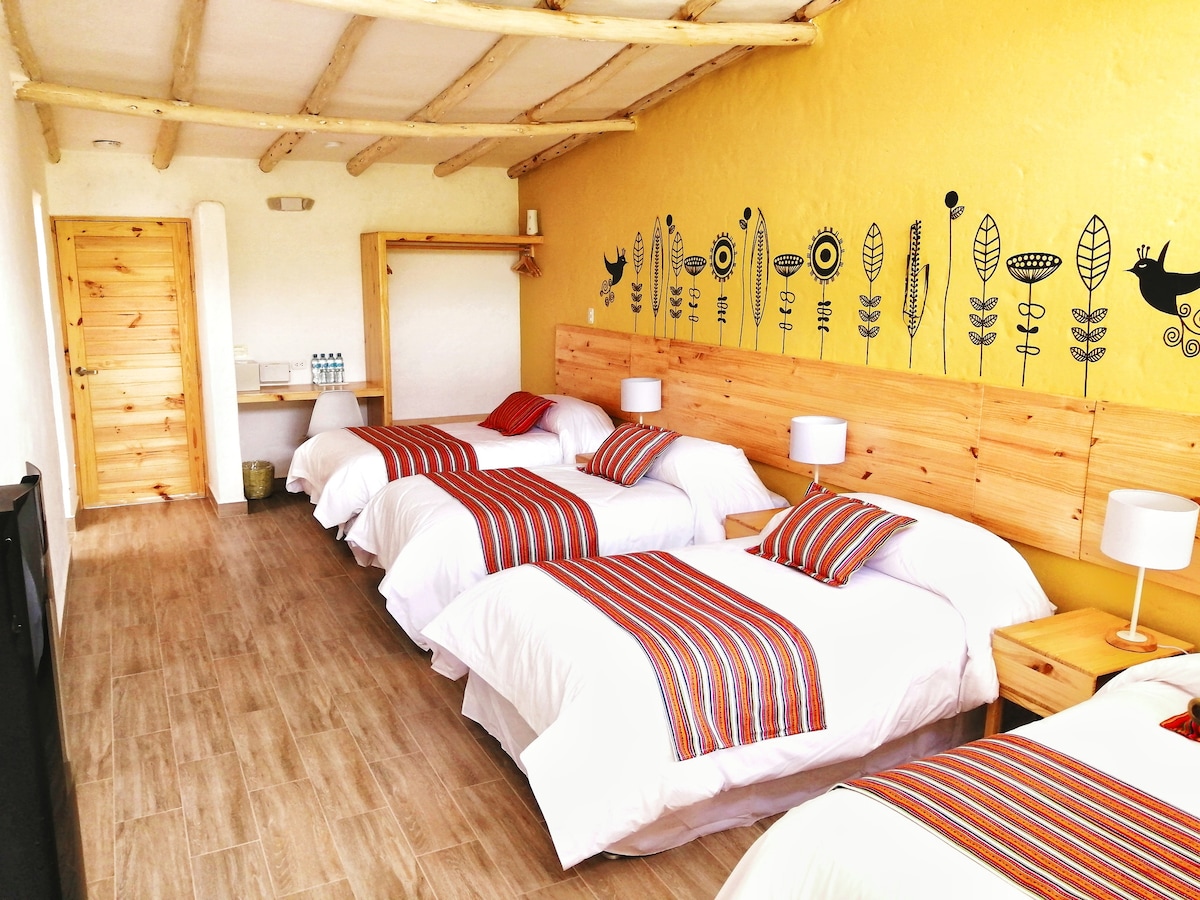 Disfruta de este encantador espacio para quedarte, cerca de todo,en la esquina de la Plaza de Chivay camas con plumones, cuentan con TV 55", agua caliente en ducha y lavatorio las 24 horas, , cortinas black out, baños A1,incluye un delicioso desayuno.