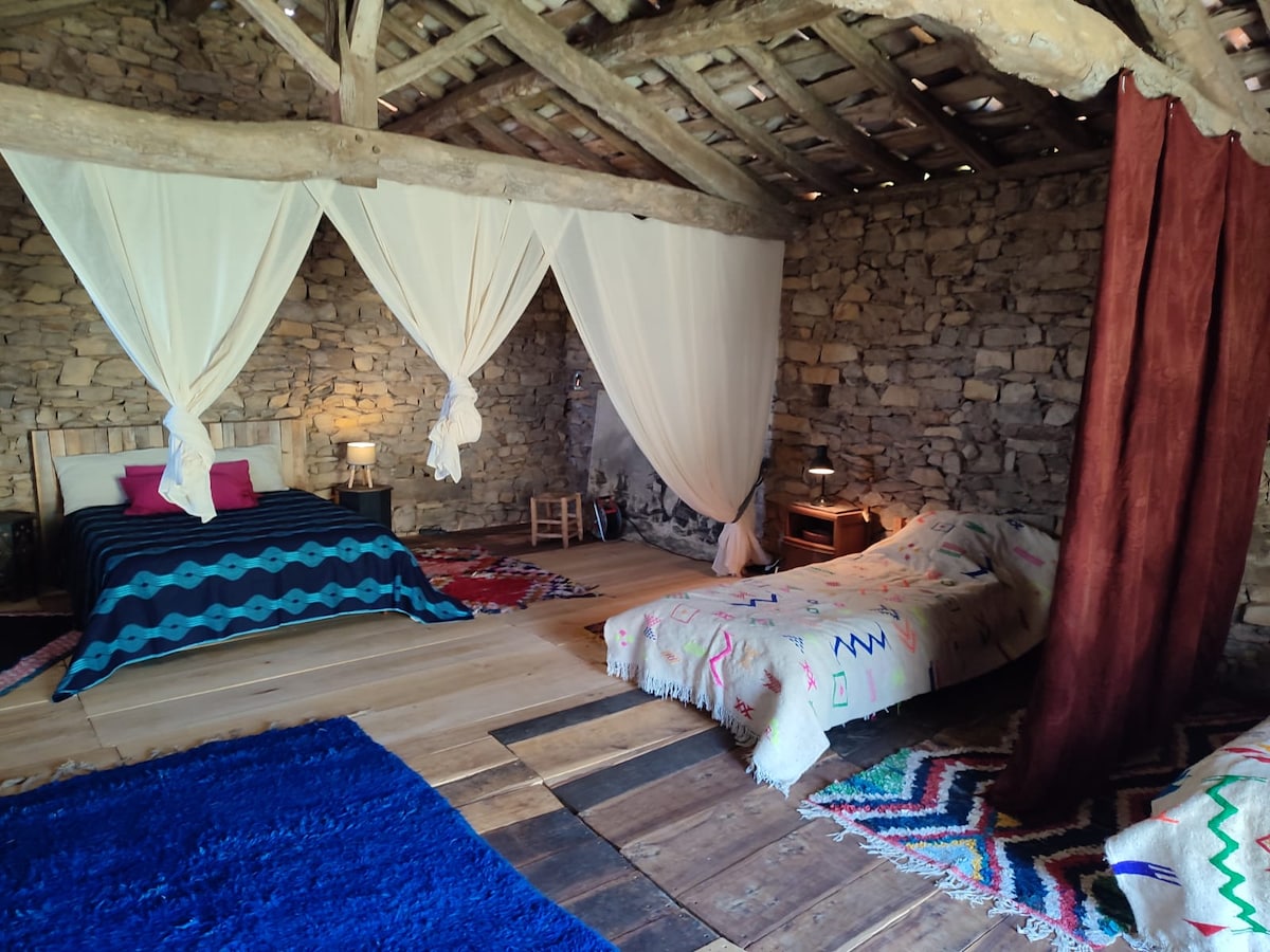 Nid surplombant une mer d'arbres. Ancien four à pain devenu une maison lumineuse à l'abri des regards, avec une petite cour japonisante à l'entrée, un jardin à l'arrière donnant sur une forêt, au cœur du Quercy. Rez de chaussée en pierre, étage en bois, poêle à bois (indispensable l'hiver !), chemins de randonnée immédiatement accessibles, nombreuses activités culturelles et sportives dans la région. Idéal pour amoureux de la nature, des promenades, du calme.