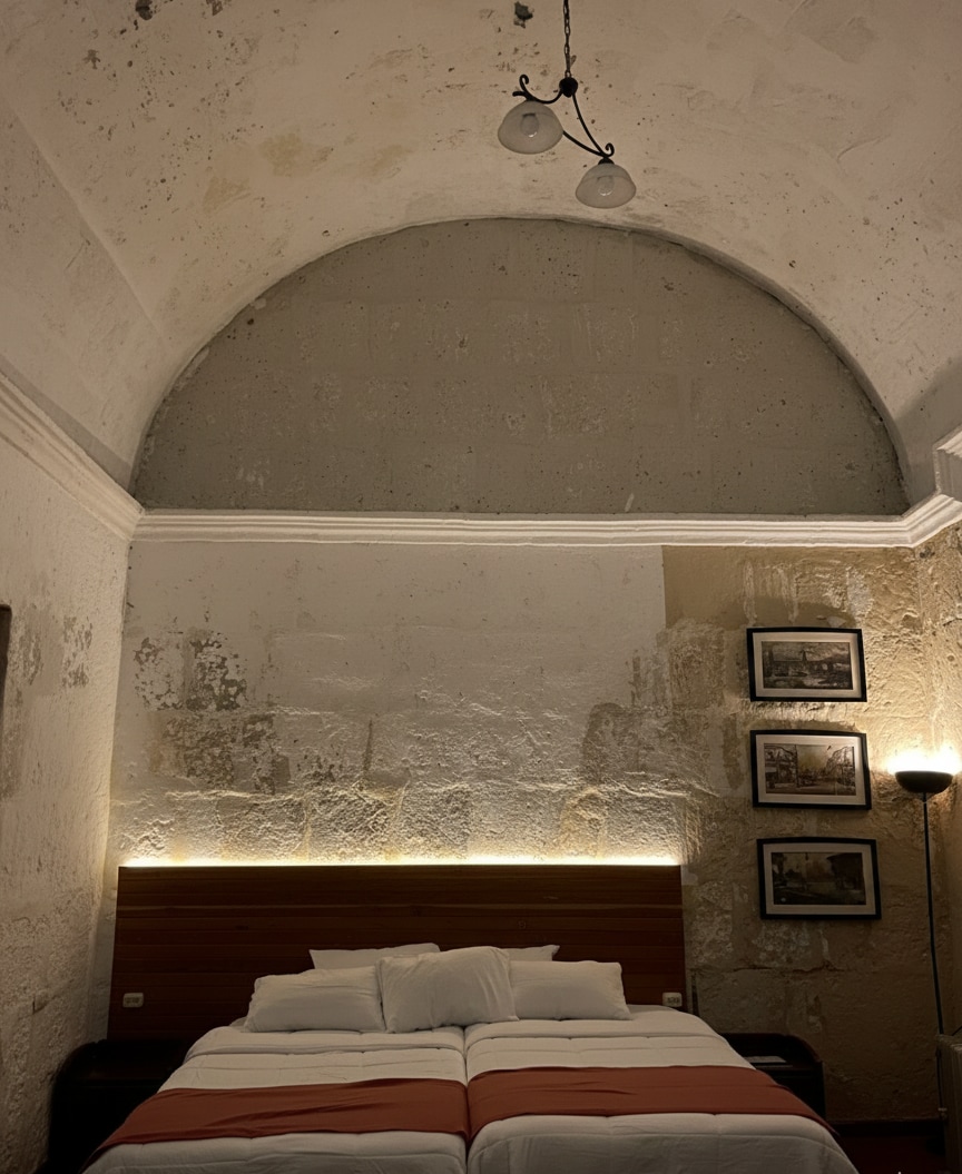 Habitación del siglo XVIII, construida en su totalidad de Sillar, piedra volcánica característica de las construcciones coloniales en Arequipa. Fue restaurada y renovada combinando a la perfección un estilo minimalista con la arquitectura caracteristica de esa epoca.